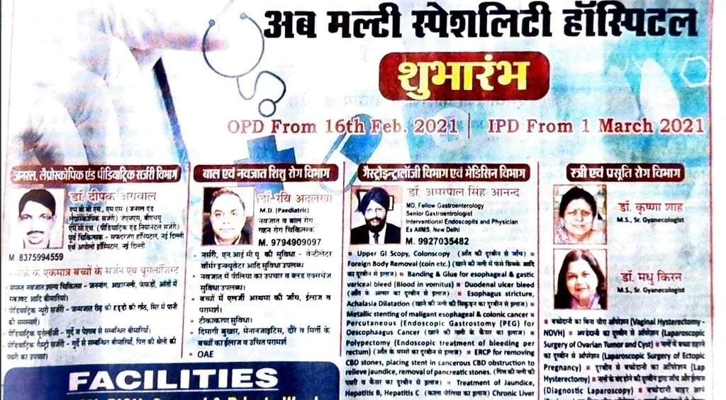 Shree Ram Hospital, Haldwani, is now serving as a Multi Speciality Hospital with OPD started from 16 February 2021 and IPD from 1 March 2021. The hospital offers experienced doctors, specialized departments, and modern facilities including ICU, NICU, PICU, digital X-ray, and pathology lab support.